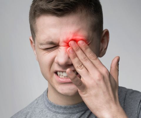 Exposição a substâncias que causam alergia, como pólen, poeira, caspa ou pêlos de animais, levando o surgimento de vermelhidão, coceira intensa no olho, dor, inchaço e produção excessiva de lágrimas.