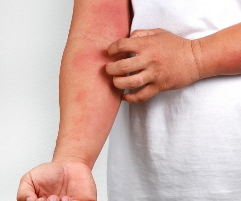 Chamamos de Urticária as manchas avermelhadas e elevadas, que coçam muito e parecem picada de inseto. Quando surgem diariamente ou quase todos os dias por mais de seis semanas, chamamos de urticária crônica.